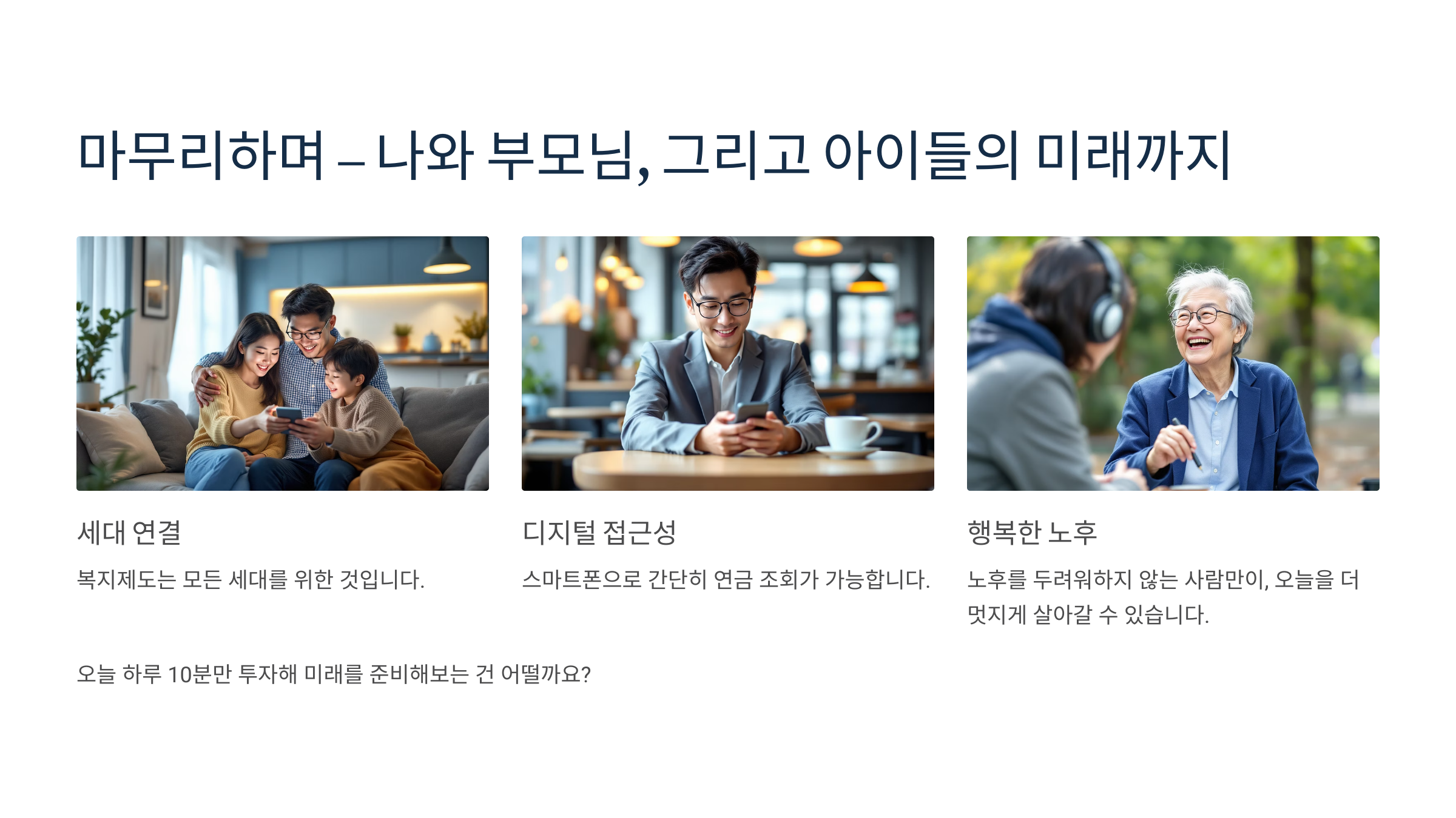 우리 부모님의 현재이자, 내 미래고, 자녀들의 부담을 줄여주는 장치이기도 해요.