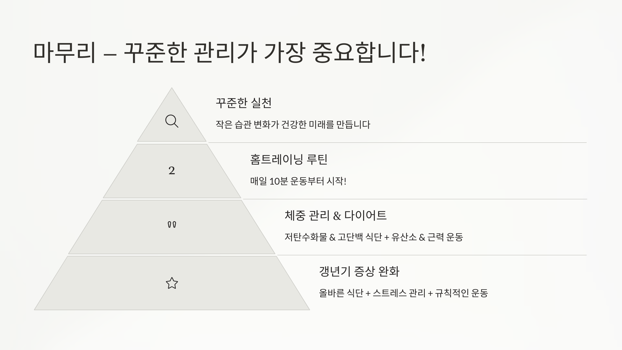 ✅ 갱년기 증상 완화 – 올바른 식단 + 스트레스 관리 + 규칙적인 운동