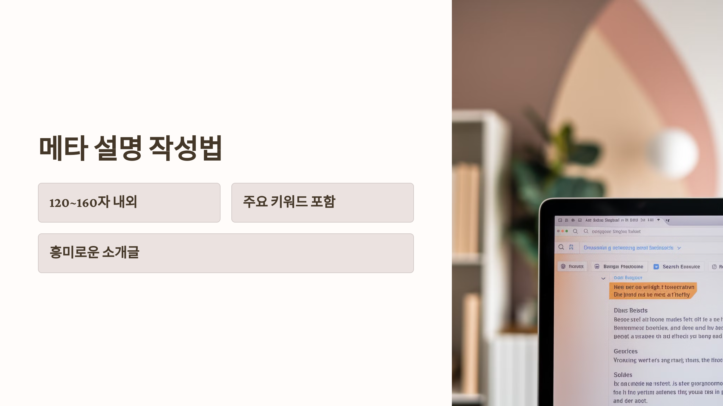 메타 설명은 검색결과에서 제목 아래에 보이는 짧은 소개글입니다.
