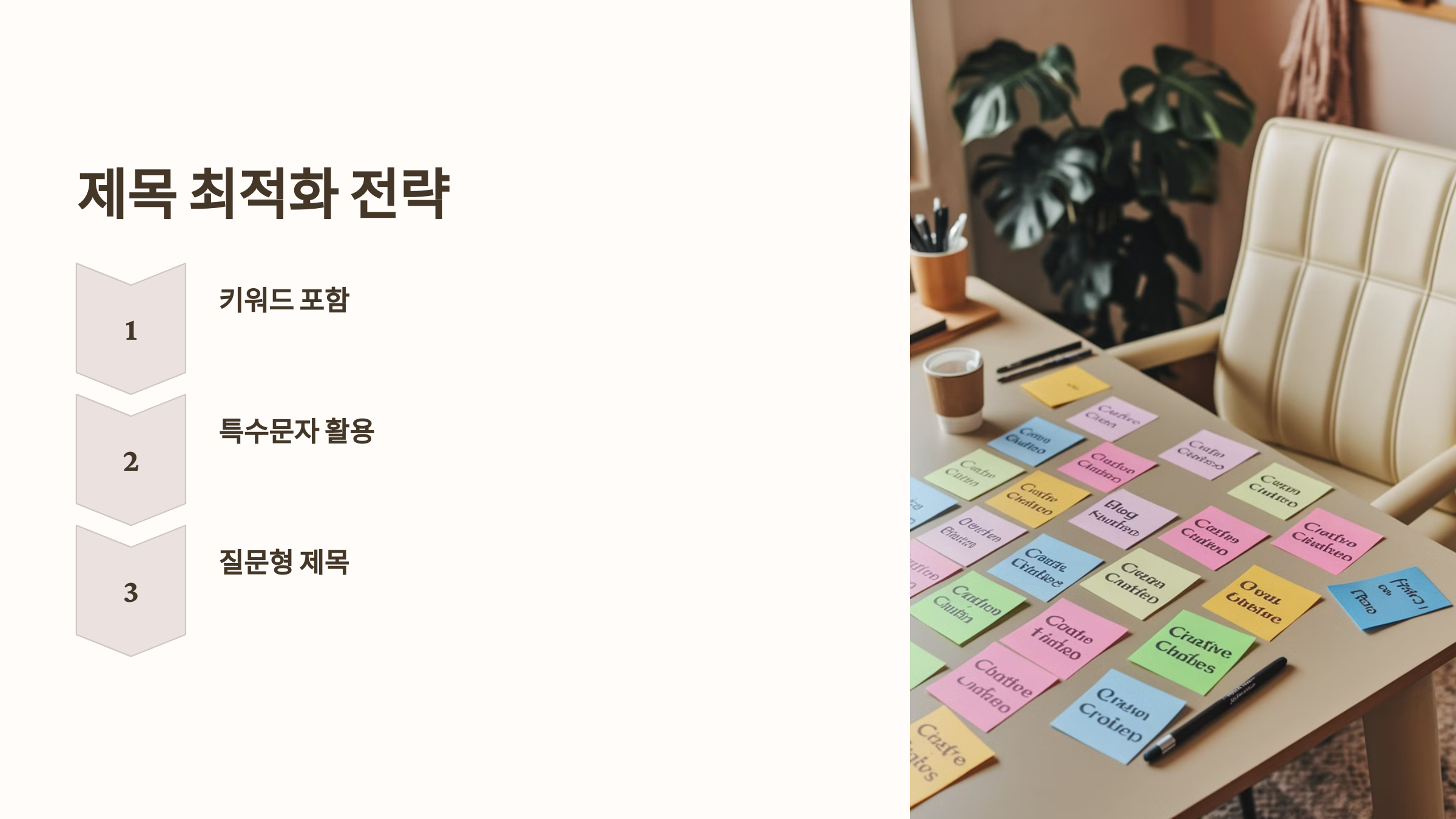 검색결과에서 가장 먼저 보이는 것이 **제목(Title)**이므로 키워드를 적절히 포함해야 합니다.