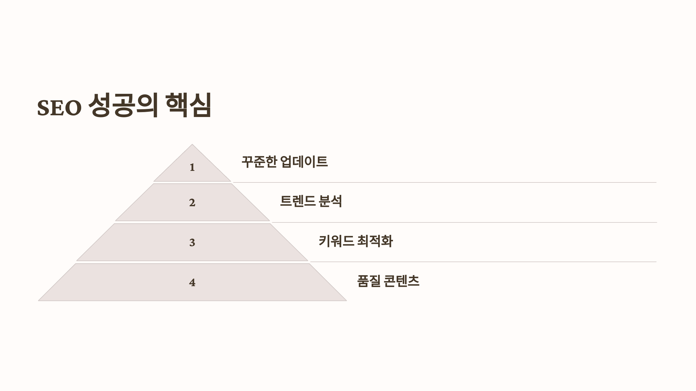 SEO 최적화는 한 번만 적용해서 끝나는 것이 아닙니다. 정기적으로 키워드를 분석하고, 콘텐츠를 업데이트하며, 검색 트렌드에 맞춰 개선하는 것이 중요합니다.