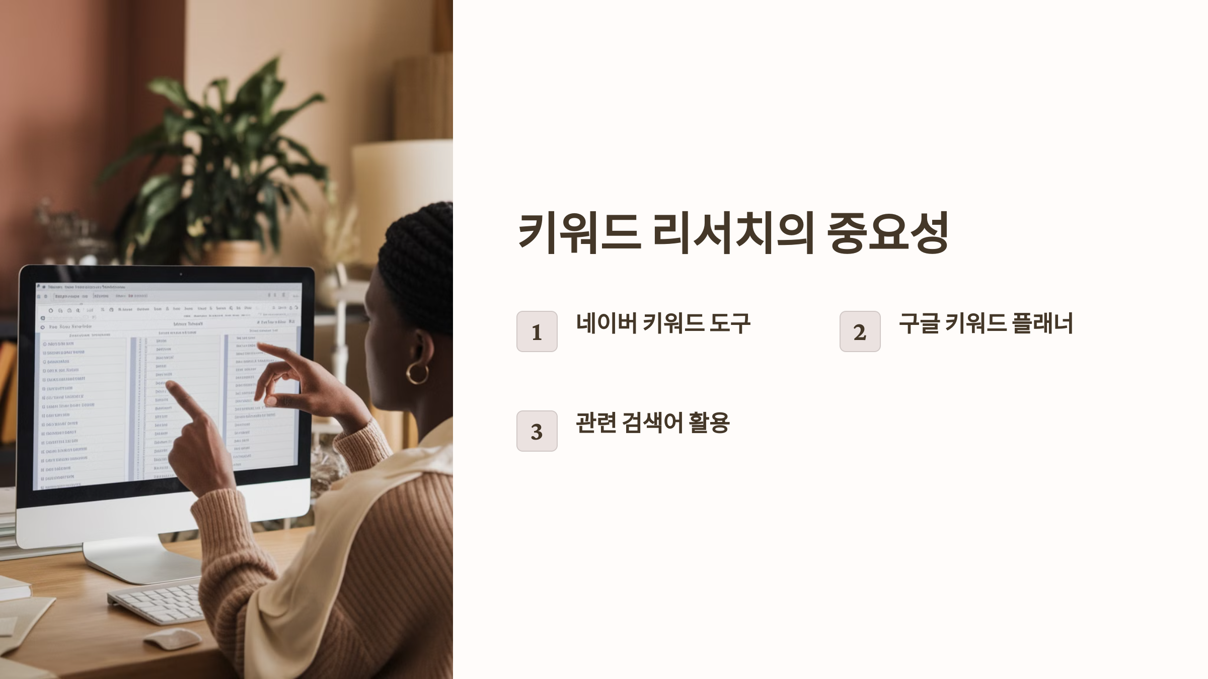 • 장기 키워드 (롱테일 키워드): "아이와 함께 가기 좋은 제주도 여행지", "혼자 떠나는 서울 카페 투어"