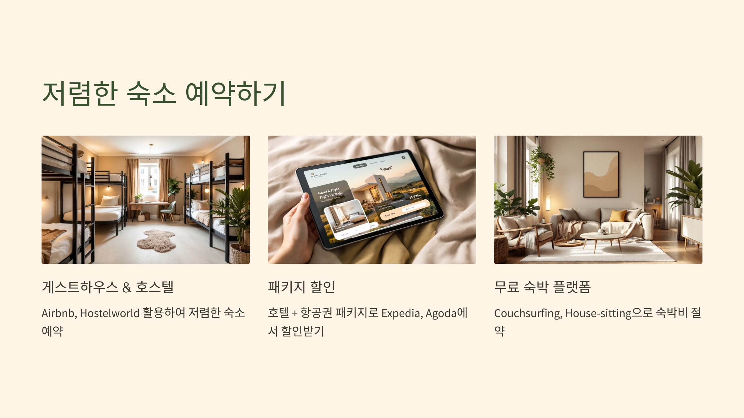 게스트하우스, 호스텔 이용 (Airbnb, Hostelworld 활용)