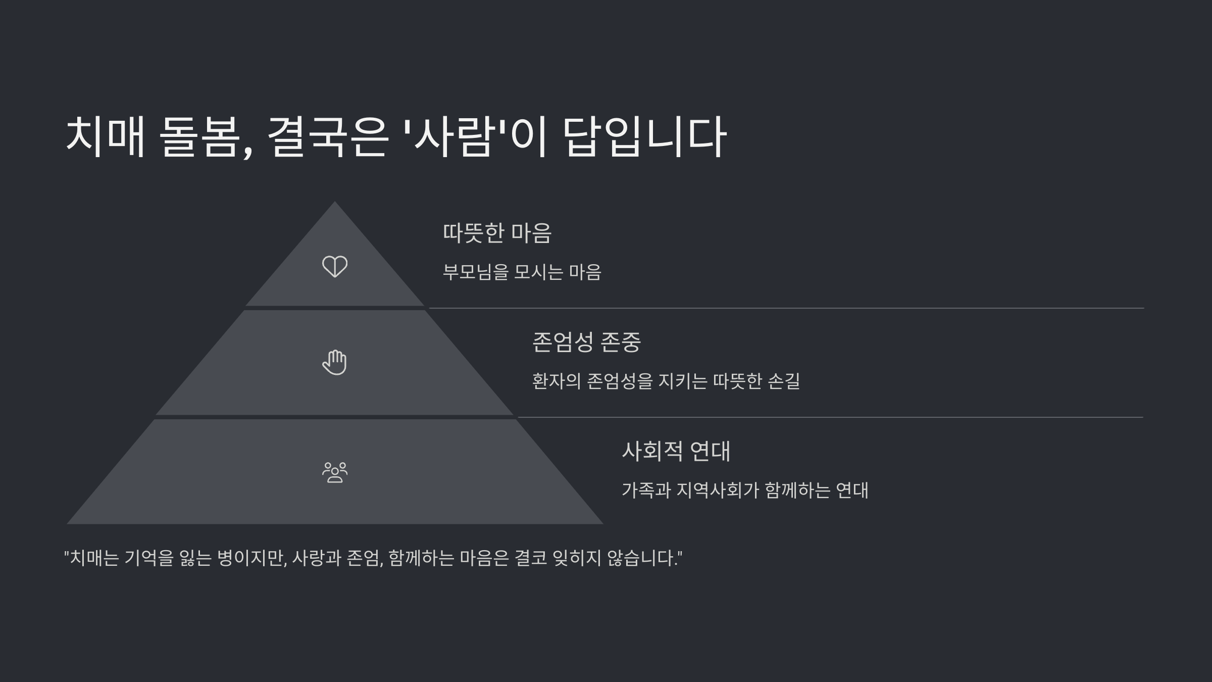 “치매는 기억을 잃는 병이지만, 사랑과 존엄, 함께하는 마음은 결코 잊히지 않습니다.”