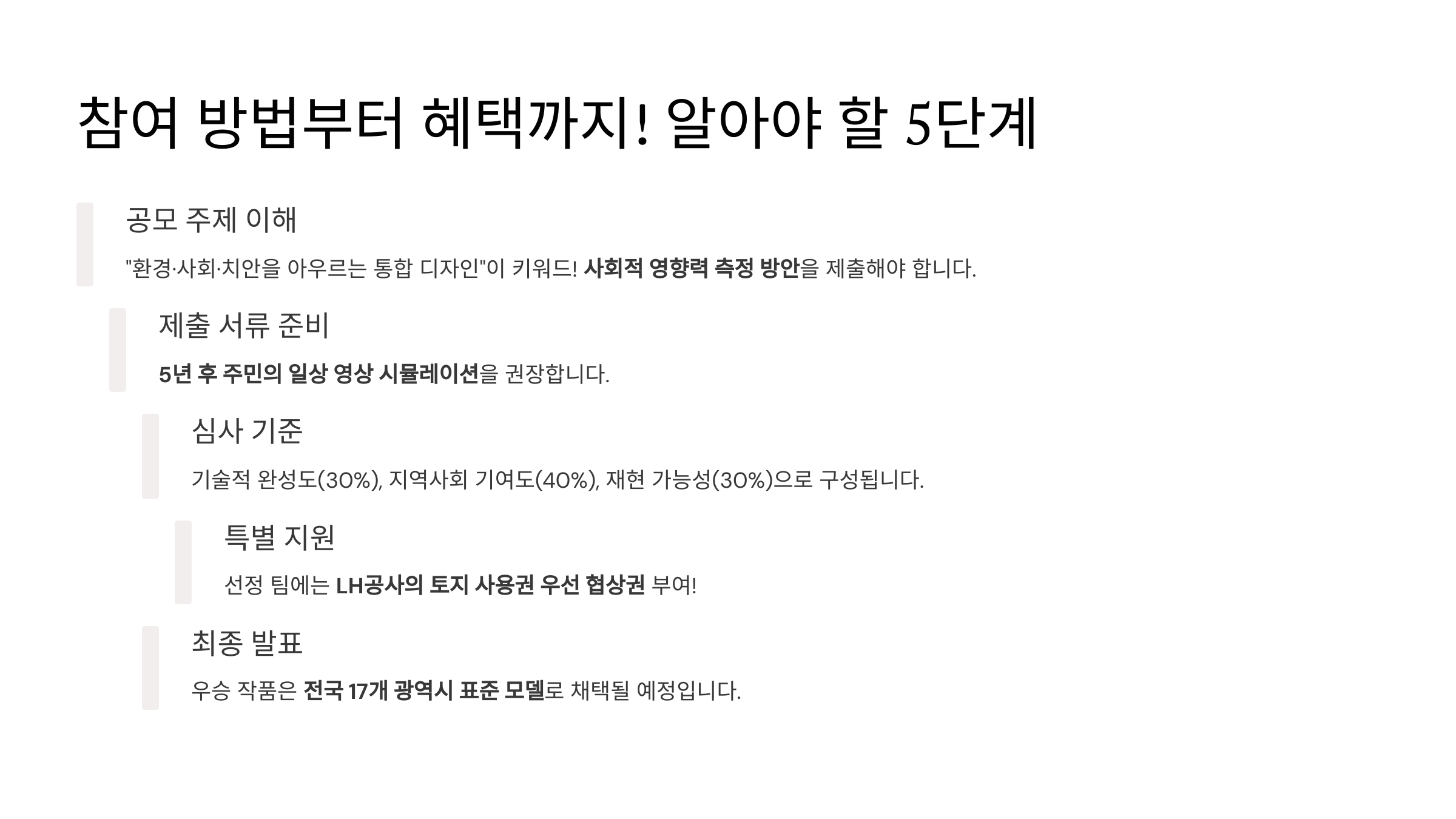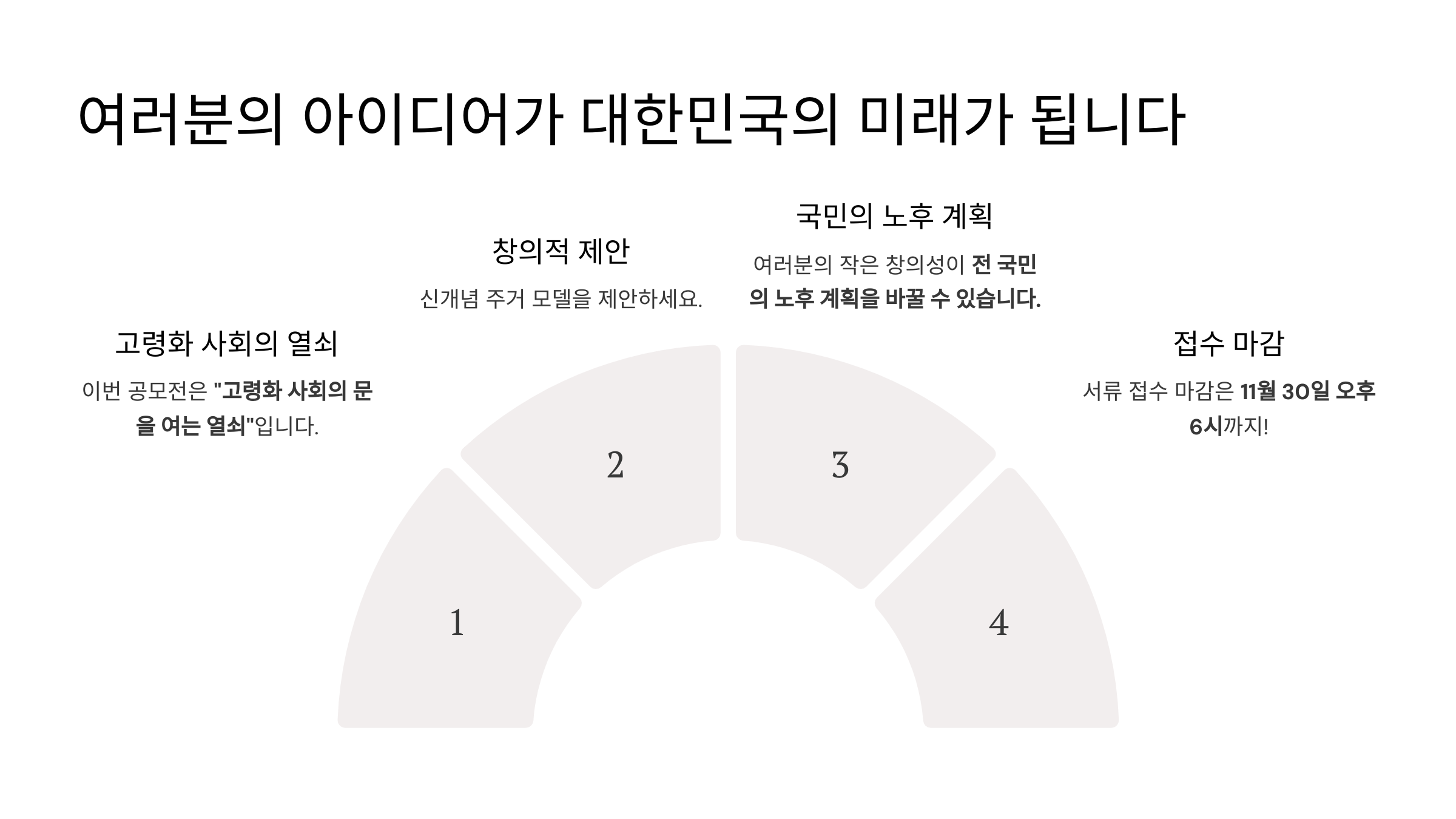 이번 공모전은 단순한 주택 디자인을 넘어 “고령화 사회의 문을 여는 열쇠”입니다. 신개념 주거 모델을 제안하는 동시에, 여러분의 작은 창의성이 전 국민의 노후 계획을 바꿀 수 있습니다.