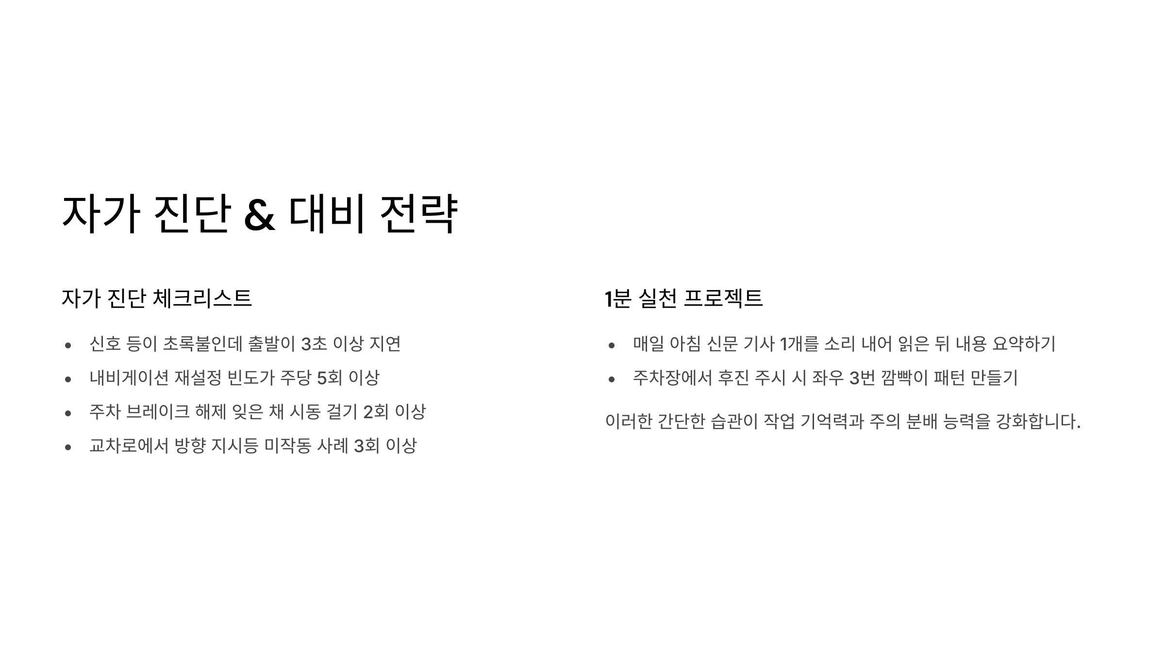 마지막으로, 운전대를 잡은 지 40년 차 이모님의 이야기: "면허증 반납은 제 인생 반납 같아요. 하지만 새 시스템이 진짜 안전을 책임진다면, 오히려 제가 더 적극 참여할 거예요."