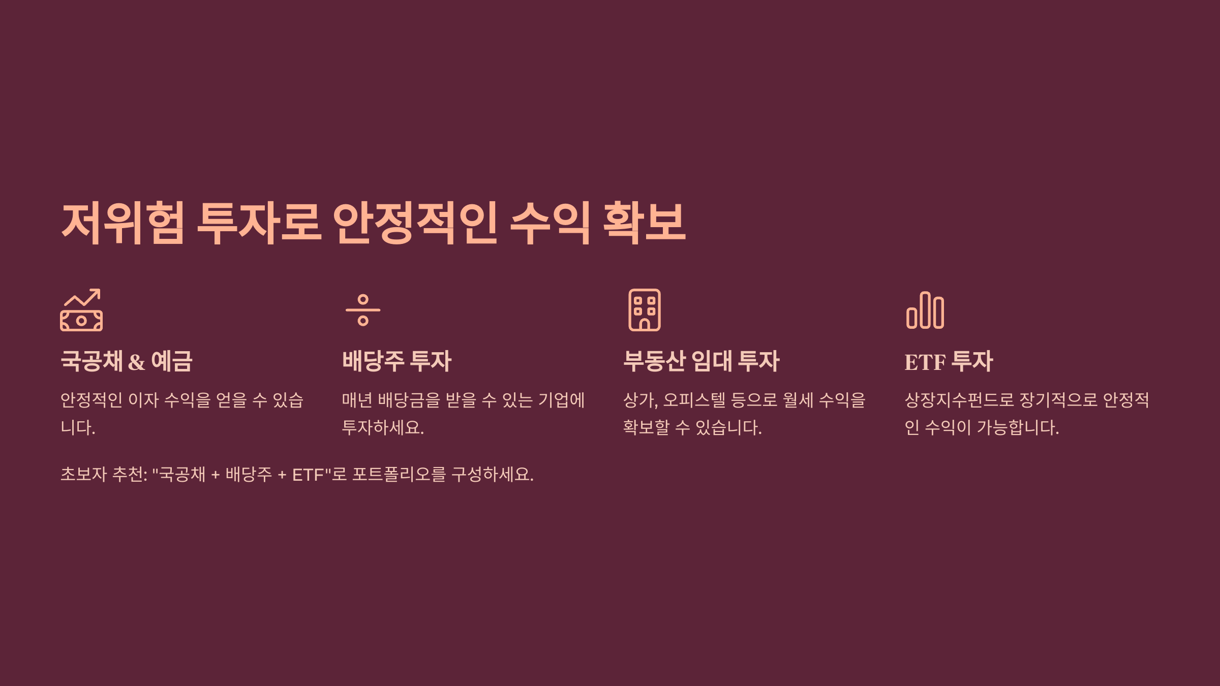 ✔ 저위험 & 안정적인 투자로 꾸준한 수익 만들기